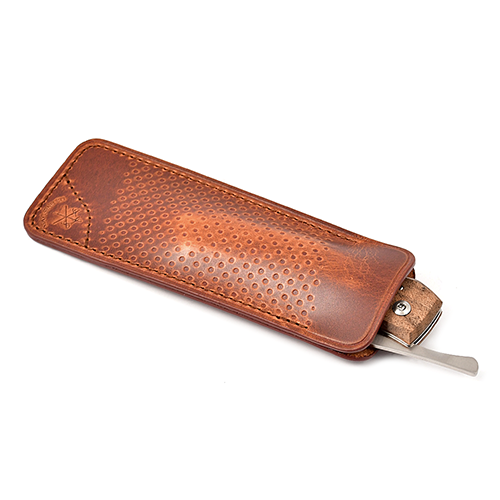 Ножны Les Fines Lames, как и их ножи, изготавливаются вручную во Франции, конкретно этот изготовлен из телячьей кожи.
