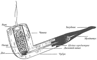 Мундштук может быть изготовлен из эбонита, а также метала, кости, дерева. Популярность в последнее время приобрели акриловые мундштуки, которые устойчивы к царапинам и долговечны. Для того чтобы проверить, как работает дымовой канал, через пустую курительную трубку в собранном виде слегка втягивают воздух. Звук должен быть приглушенным и ровным, без свистов и хрипов. Это один из показателей доброкачественности изделия. Длина трубки должна быть не меньше 10-15 см, в противном случае дым не успевает остывать, и будет слишком горячим.