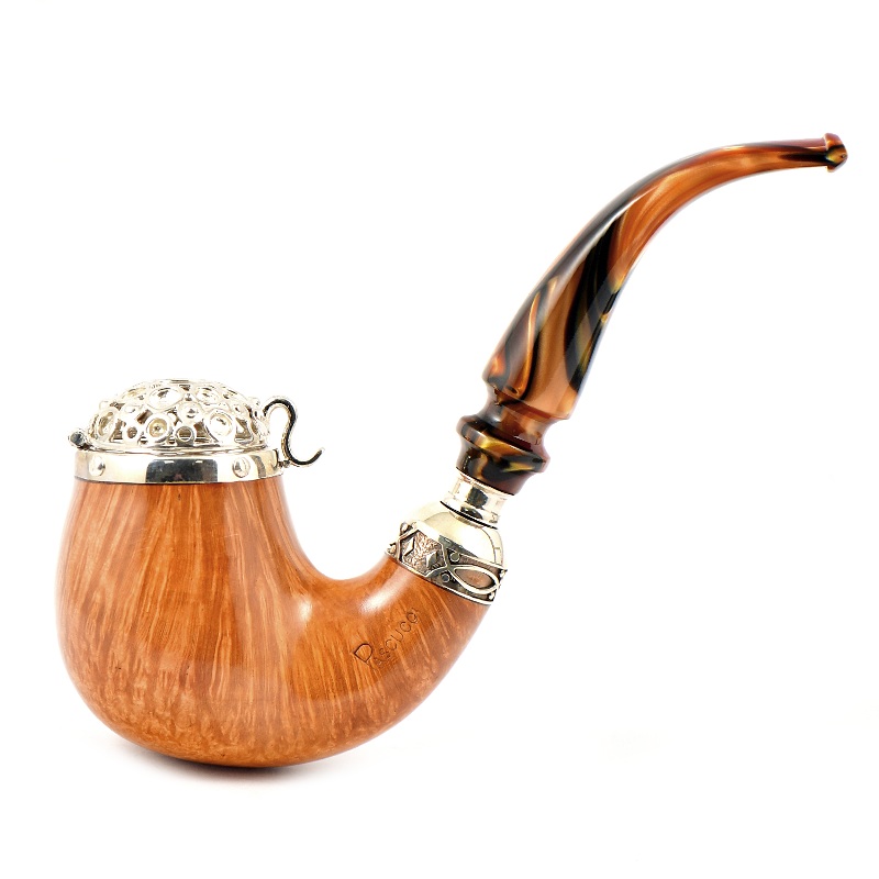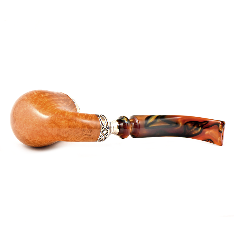 Эксклюзивная трубка Марио Паскучи Pezzo Unico 2780, созданная вручную Марио Паскучи. Модель выделяется редким, выразительным рисунком бриара, который подчёркивает индивидуальность изделия и делает его уникальным в своей серии. Элегантная серебряная крышка и кольцо завершают образ, добавляя утончённости и классического итальянского шарма.