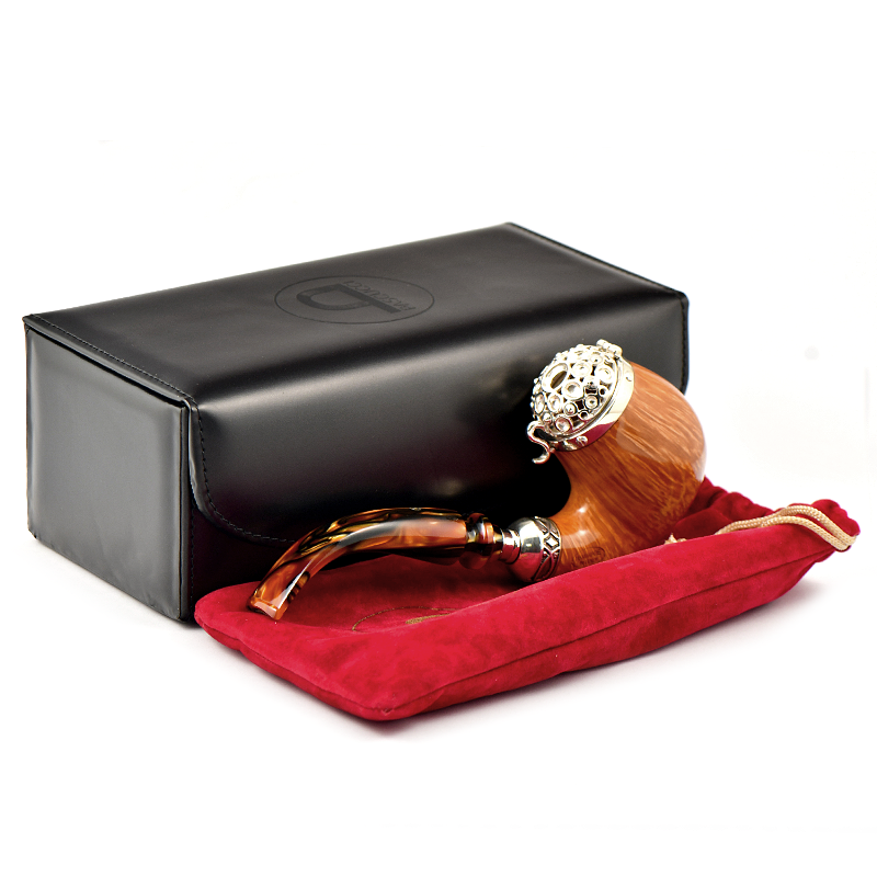 Поставляется в роскошной подарочной шкатулке из натуральной кожи - отличный выбор для коллекции и ценителей авторских итальянских трубок.