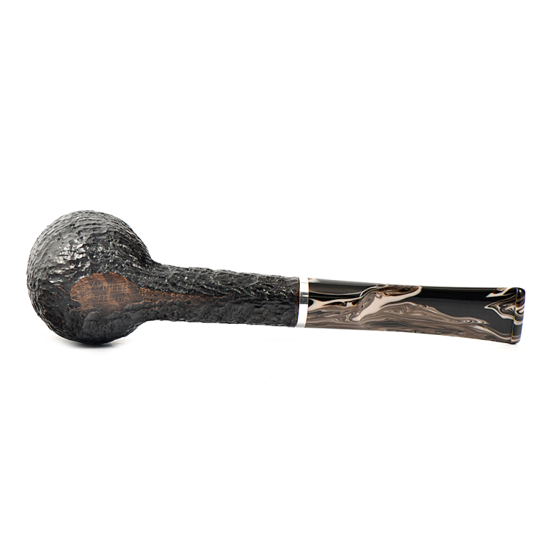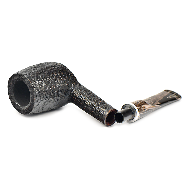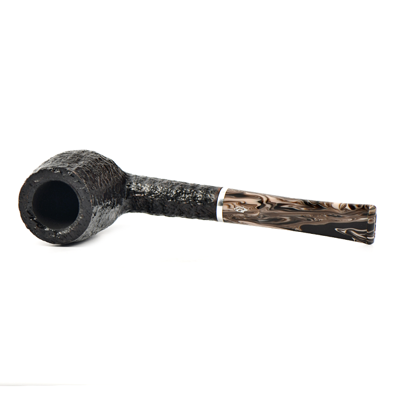 Эта трубка имеет темно-коричневую чашу с гладкой отделкой и черную чашу с рустованной отделкой, а также акриловый мундштук красивого коричневого меланжевого цвета.