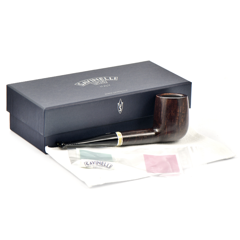 Историческое имя в линейке, Savinelli сделали рустованную и гладкую коричневую отделку с бежевым кольцом и черным акриловым мунштуком.