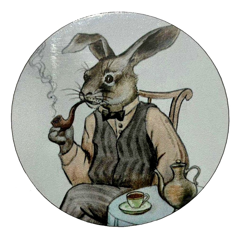 Магнит на банку табака - Чай у Кролика (круг)