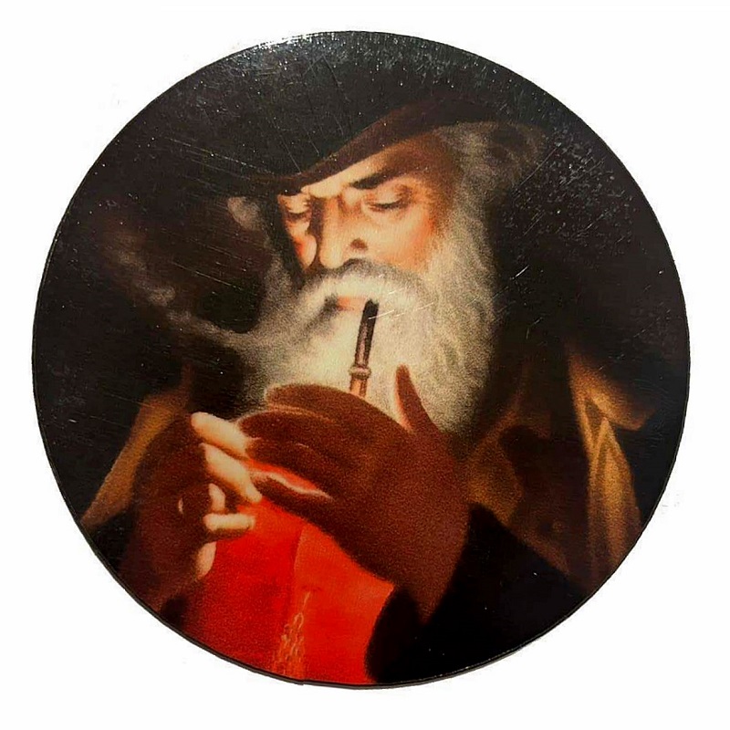 Магнит на банку табака - Старик прикуривает (круг)