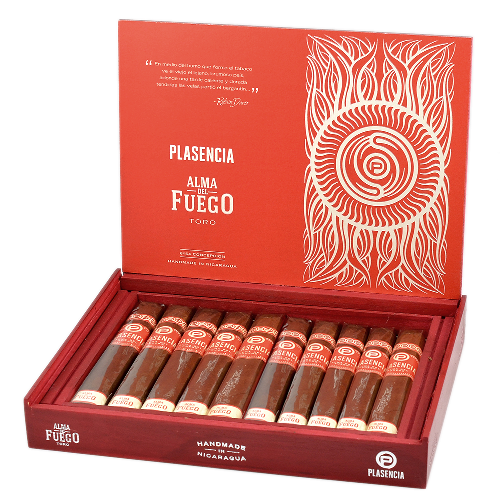 Cигара с богатым и весьма динамично развивающимся вкусом, в котором глубокие землистые тона сплетаются с оттенками кожи и эспрессо, завершаясь пряным послевкусием. Альма дель Фуэго в переводе с испанского означает «Душа Огня», и это подходящее имя. Рожденная от солнца и вулканов, она живет в ожидании пламени вашей зажигалки, чтобы сгореть дотла, доставляя удовольствие своему владельцу.Plasencia Alma del Fuego была награждена 92-балльной оценкой, с комментарием афисионадо - «Лоснящиеся от масла, эти box-pressed сигары уплощены с боков и до поры закрыты листом с внешней стороны. Но стоить открыть и прикурить сигару, как она разродится плотным и пряным ароматом с глубоким древесным оттенком, подчеркнутым прикосновениями кофейных зерен, сухофруктов и гвоздики. Сладкое послевкусие с нежным ореховым тоном".Скрутка: РучнаяФормат: ToroПроизводитель: Республика НикарагуаПокровный лист: Никарагуа JalapaСвязующий лист: НикарагуаНачинка: НикарагуаРазмер: 152 x 21.4 мм (RG54)Индивидуальная упаковка: ЦеллофанКрепость: Выше СреднейКоличество в коробке: 10 штНаграды и достижения:9 место в Cigar Aficionado - Top 25 Cigars of the Year 2019По версии журнала CigarAficionado эта сигара получила 93 балла