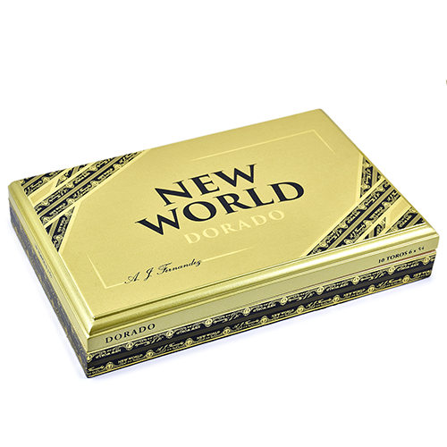 Новая версия сигар New World - Dorado отличается тёмно-золотистыми цветами и полностью изготавливается из никарагуанского табака, большая часть которого поступает с фермы компании Dorado в Эстели.Покровный лист Habano Sun Grown, начинка производится на фабрике San Lotano в Окотале.Начальные затяжки сливочные, с нотками цитрусовых, далее добавляются пряные ноты орехов и кожи.Скрутка: ручная.Формат: Toro.Производитель: Республика Никарагуа.Покровный лист: Habano Sun Grown, Никарагуа.Связующий лист: Никарагуа.Начинка: Никарагуа.Размер: 152 x 21.4 мм (RG54).Индивидуальная упаковка: целлофан.Крепость: выше средней.Количество в коробке: 10 шт.