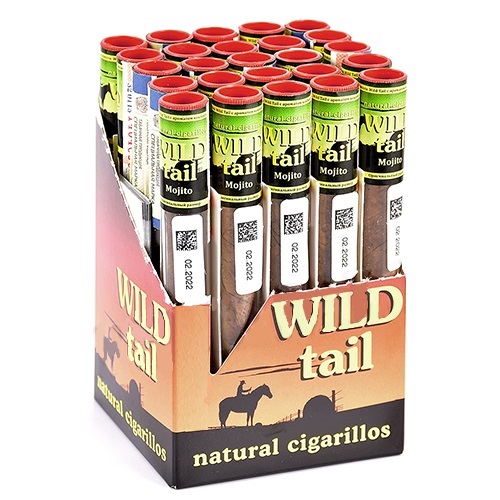 Оригинальные, стильные сигариллы WILD TAIL скручиваются исключительно вручную из отборного табака, выдержанного в горячих прессах, собранного в известнейших табачных регионах США, Бразилии, Аргентины и Зимбабве. Табак проходит специальную обработку в горячих прессах, благодаря чему сигариллы приобретают мягкий и гармоничный вкус. В качестве покровного листа выбран американский табачный лист Light Wrapper, обработанный по инновационной технологии горячей ферментации. Все поступающие в продажу сигариллы WILD TAIL проходят контроль качества во время упаковывания в современную, стильную упаковку из трехслойных материалов, гарантирующую сохранность вкусоароматических параметров продукта и продолжительный срок хранения.Покровный лист: Mata Fina Bahia (Бразилия).Начинка: смесь табаков Virginia (Бразилия, Зимбабве, Аргентина, США).Аромат: коктейля МохитоВкус: коктейля МохитоРазмер: 105 х 11 ммФормат: Wild Tail - 1 сигарилла в герметичной стеклянной тубе (накопитель 25 стеклянных туб).Крепость: выше средней.