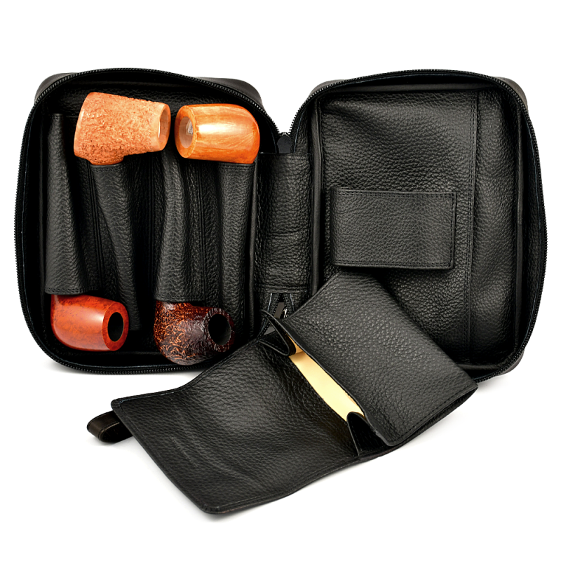 Сумка c кисетом, из высококачественной, мягкой кожи, для четырёх трубок.