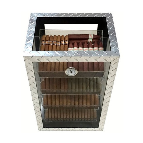 Шкаф-витрина для хранения сигар Aficionado Diamnod Plate способен вместить до 250 сигар.Стильный и современный дизайн хьюмидора выделяется своей оригинальностью - массивное изделие выполнено из стекла и полированной алмазной пластины.Стеклянные стенки витрины позволяют видеть сигары, находящиеся внутри хьюмидора, с любой стороны, добавляя практичности и эффектности внешнему виду изделия.Внутренняя отделка из испанского кедра, в комплекте идут гигрометр и увлажнитель.Материалы: алмазная пластина, стекло, испанский кедр. Производитель: Aficionado.Производитель: Тайвань.Размер: 36 x 27 x 56 см.Вместимость: приблизительно 250 сигар (в зависимости от их размера).